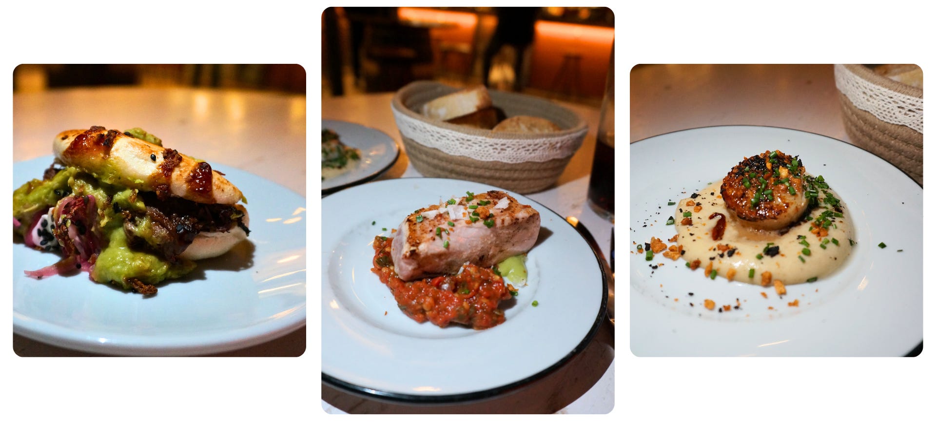 Vieira Toro: One perfectly seared scallop atop a creamy sauce. Amazing flavor.